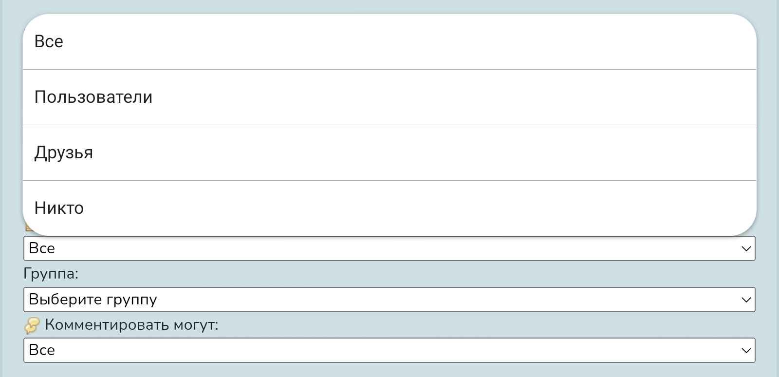 Введите имя пользователя и выберите вариант из списка